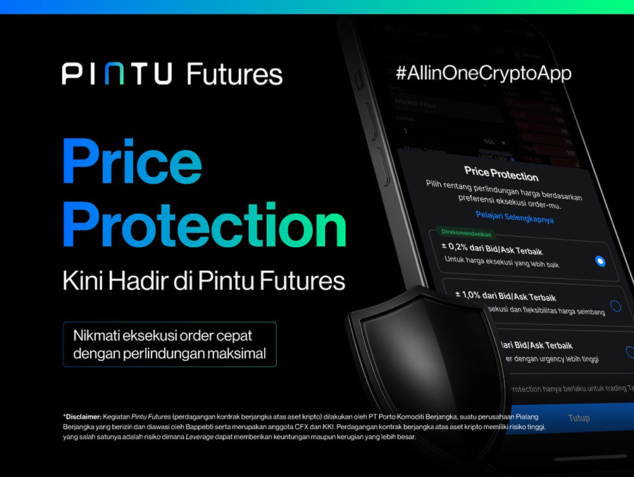 Head of Product Marketing PINTU Iskandar Mohammad mengungkapkan, “Fitur Price Protection memungkinkan pengguna memilih batas maksimum slippage (0,2%, 1%, atau 2,5%) saat mengeksekusi market order. Tujuannya untuk melindungi trader dari eksekusi order di luar batas harga wajar, terutama ketika market “loncat” akibat perbedaan likuiditas di order book atau pergerakan harga mendadak. Dengan adanya fitur ini, trader bisa terhindar dari kerugian akibat “price spike” atau “price crash” sesaat, sekaligus merasa lebih aman saat trading di kondisi pasar yang volatile,”