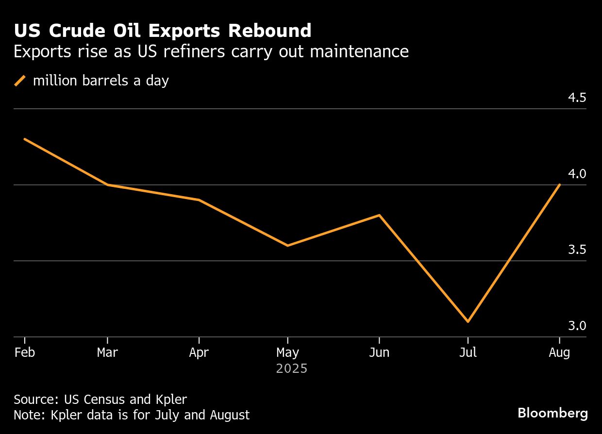 Ekspor minyak AS untuk pertama kalinya dalam delapan pekan menembus 4 juta barel per hari pekan lalu, menurut data pemerintah yang dirilis Rabu. Perawatan kilang telah dimulai di fasilitas TotalEnergies SE di Port Arthur, Texas, serta kilang Shell Plc di Norco, Louisiana.