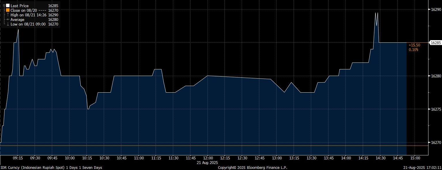 Bloomberg Technoz, Jakarta - Rupiah menutup perdagangan hari ini dengan pelemahan terbatas 0,1% di tengah sentimen wait and see agenda simposium tahunan bank sentral AS.