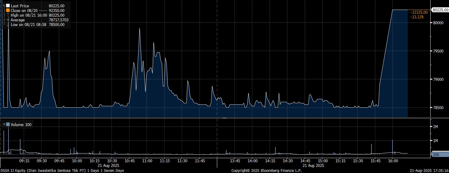 IHSG Ditutup Melemah 0,67%, Saham DSSA Ambles 13%