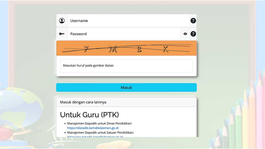 Masukkan username dan password yang terdaftar di sistem Dapodik.