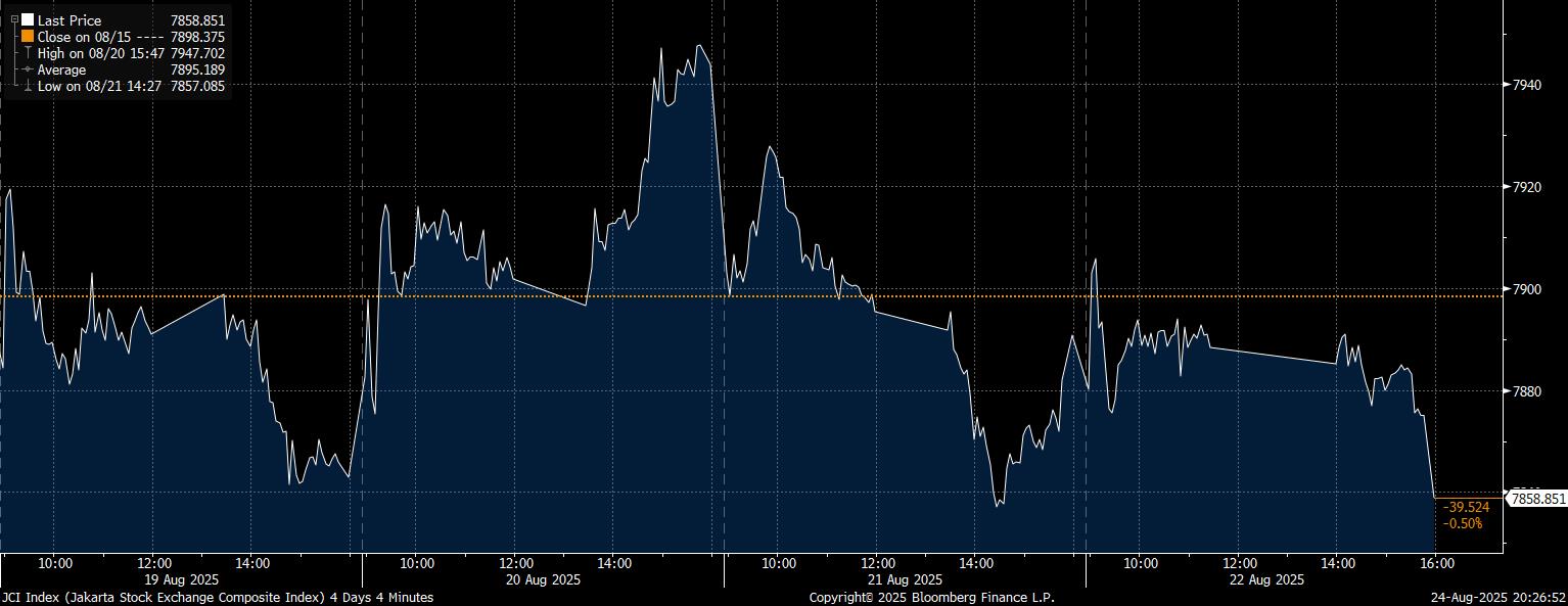Bloomberg Technoz, Jakarta - Indeks Harga Saham Gabungan (IHSG) ditutup di zona merah pada perdagangan sepekan kemarin hingga Jumat (22/8/2025). IHSG turun tipis 0,5% hingga flat di posisi 7.858,85. Lantas bagaimana dengan rekomendasi saham hari ini?
