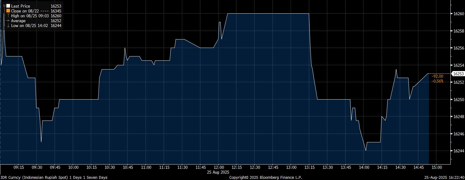 Sepanjang hari ini, di pasar spot, rupiah bergerak menguat di mana pada pagi dan siang hari tadi sempat menyentuh level terkuat hari ini di posisi Rp16.244/US$ hingga menjadi valuta berkinerja terbaik di regional Asia.