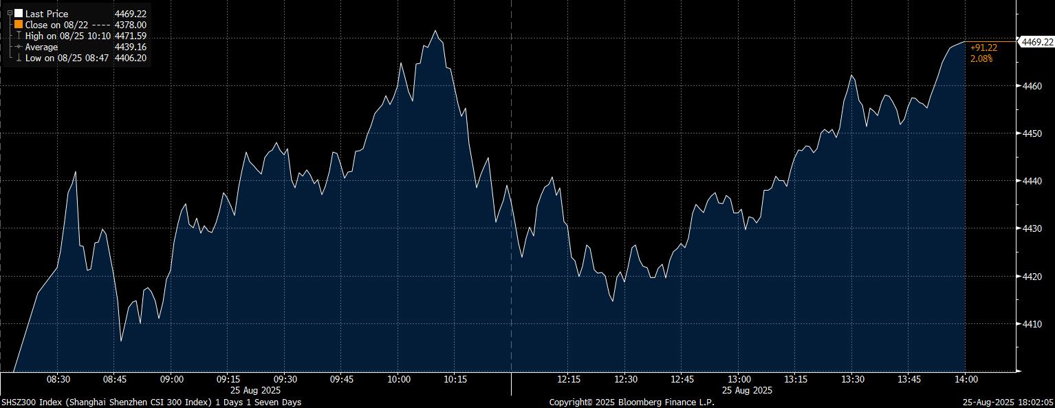 Pada tutup perdagangan, sejumlah Bursa Saham Asia kompak menguat. i.a Weighted Index (Taiwan), CSI 300 (China), Hang Seng (Hong Kong), Shenzhen Comp. (China), Shanghai Composite (China), KOSPI (Korea Selatan), SETI (Thailand), NIKKEI 225 (Tokyo), SENSEX (India), KLCI (Malaysia), TOPIX (Jepang), dan Straits Times (Singapura) yang masing–masing berhasil menguat 2,16%, 2,08%, 1,94%, 1,8%, 1,51%, 1,3%, 0,74%, 0,41%, 0,4%, 0,31%, 0,15%, dan 0,08%.