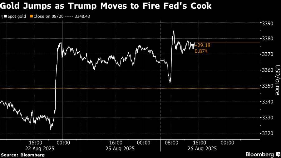 Bloomberg, Harga emas menguat setelah Presiden AS Donald Trump memberhentikan Deputi Gubernur Federal Reserve (The Fed) Lisa Cook, yang memperkuat kekhawatiran mengenai independensi bank sentral dan berpotensi meningkatkan permintaan aset safe haven.