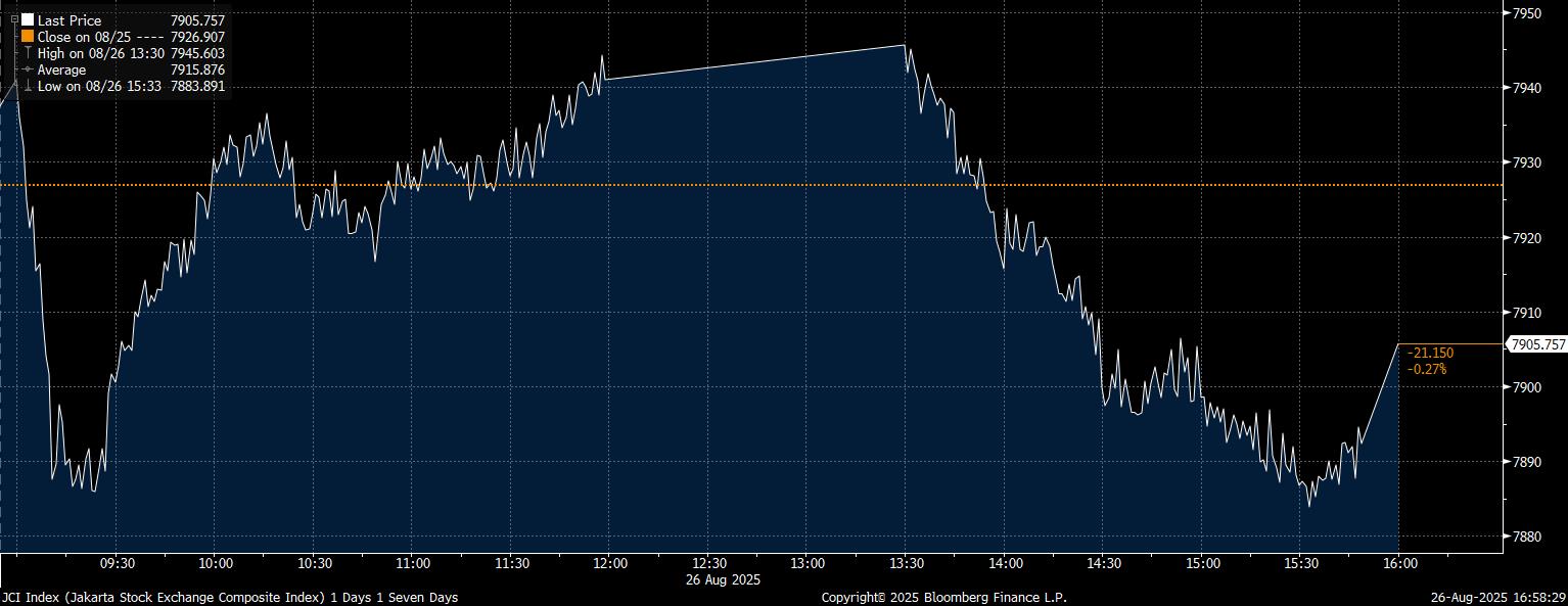 Bloomberg Technoz, Jakarta - Indeks Harga Saham Gabungan (IHSG) pada perdagangan kemarin Selasa (26/8/2025) ditutup di zona merah. IHSG melemah 0,27% hingga terpeleset di posisi 7.905,75. Lantas bagaimana dengan rekomendasi saham hari ini?