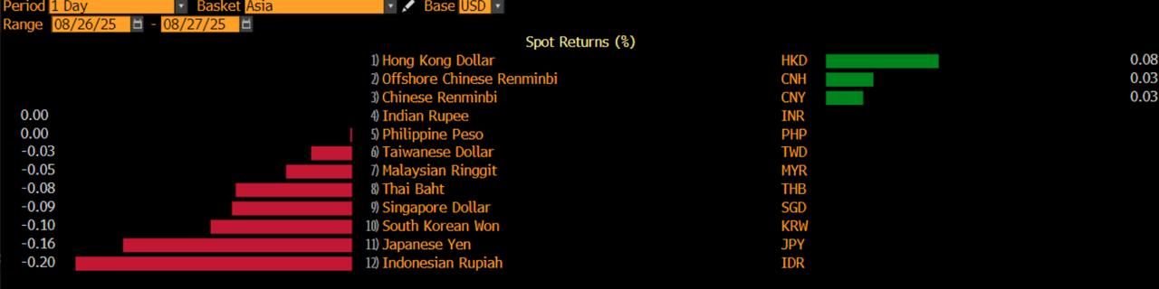 Seperti halnya rupiah, mata uang utama Asia lainnya juga menghuni zona merah. Akan tetapi, depresiasi 0,2% membuat rupiah jadi yang paling lemah.