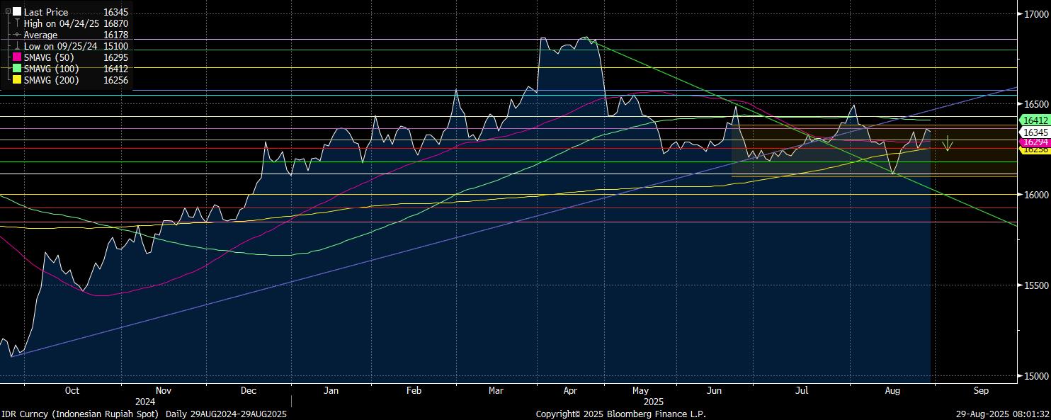 “Rupiah berpotensi terdepresiasi hari ini ke rentang Rp 16.400-16.500/US$ dipicu foreign capital outflow dan potensi skenario lanjutan menuju Rp 16.500-16.700/US$ apabila eskalasi kondisi sosial terus berlanjut,” tegas riset Mega Capital Sekuritas.