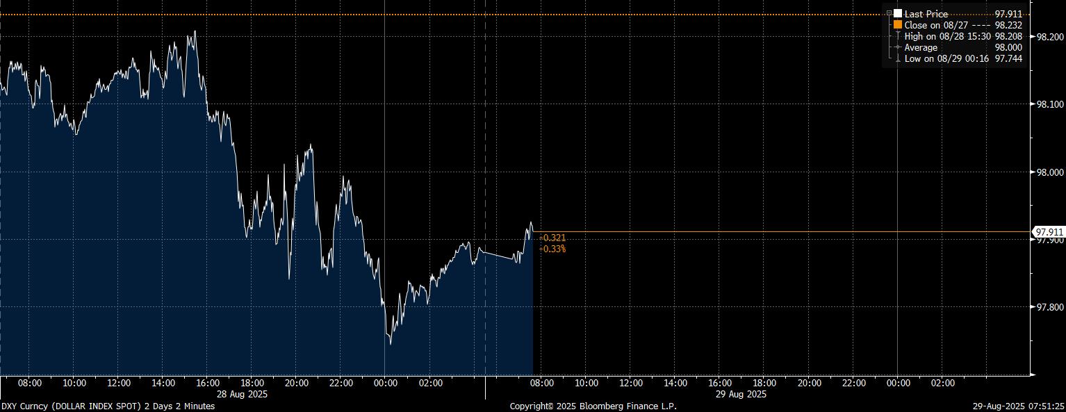 Pelemahan dolar AS disebabkan oleh ekspektasi penurunan suku bunga acuan. Mengutip CME FedWatch, probabilitas pemangkasan Federal Funds Rate sebesar 25 basis poin (bps) menjadi 4-4,25% dalam rapat September adalah 86,2%.