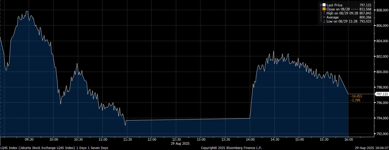 Hingga penutupan perdagangan, indeks LQ45 yang berisikan saham–saham Big Caps tercatat melemah mencapai 1,78% dan 14,45 poin ke level 797,11.