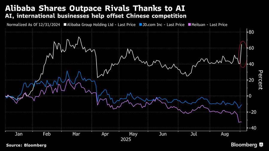 AI membantu menjelaskan mengapa saham Alibaba dengan mudah mengungguli pesaingnya yang lebih bergantung pada perdagangan tahun ini. Alibaba juga memanfaatkan pertumbuhan divisi internasionalnya yang mencakup beberapa platform belanja online paling terkenal di dunia, mulai dari Lazada hingga AliExpress.