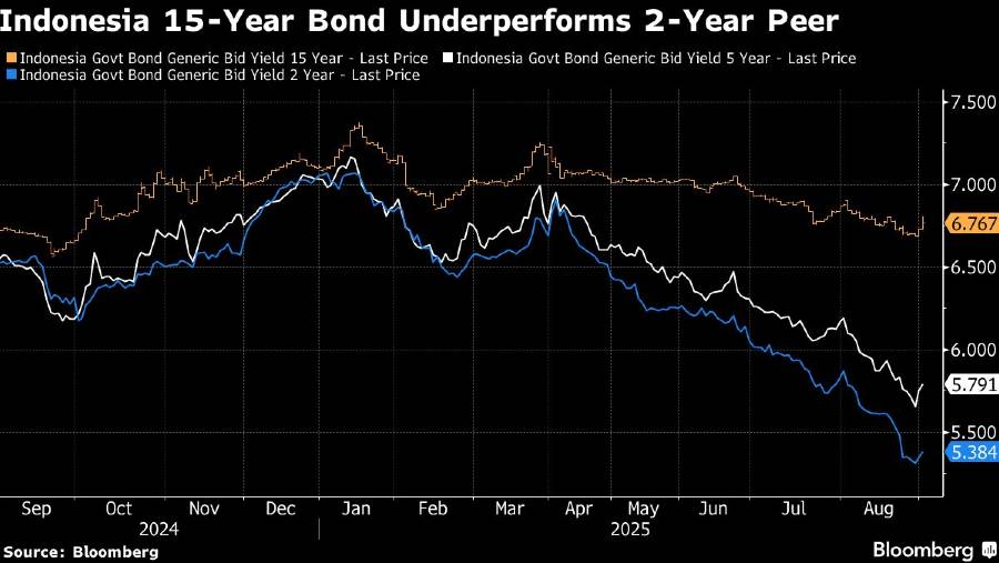 Imbal hasil obligasi pemerintah Indonesia bertenor 15 tahun naik sekitar tujuh basis poin sejak aksi jual besar-besaran dimulai pada Jumat, menghapus sebagian besar penurunan awal sejak pemangkasan suku bunga terakhir oleh Bank Indonesia.