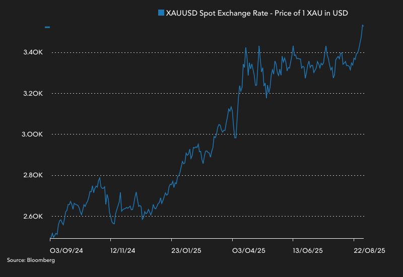 Harga emas pun melanjutkan tren positif. Sepanjang 2025 (year-to-date), harga aset ini sudah melesat 34,44%. Dalam setahun terakhir, harga meroket 41,51%.