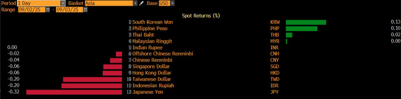 Yen Jepang menjadi mata uang terlemah di Benua Kuning dengan depresiasi 0,32%. Sayangnya, rupiah tepat berada di atasnya. Ini berarti rupiah menjadi mata uang terlemah kedua di Asia.