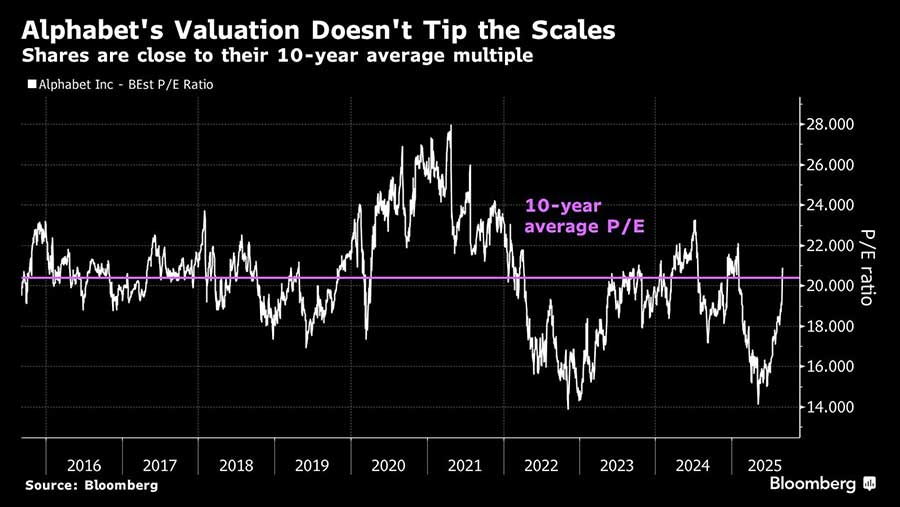 Menutup kesenjangan tersebut mungkin tidak terlalu sulit. Alphabet diperdagangkan sekitar 21 kali lipat dari perkiraan laba, dibandingkan dengan 26 kali lipat untuk Nasdaq 100, dan pendapatannya diperkirakan akan tumbuh 14% tahun ini, melampaui indeks acuan.