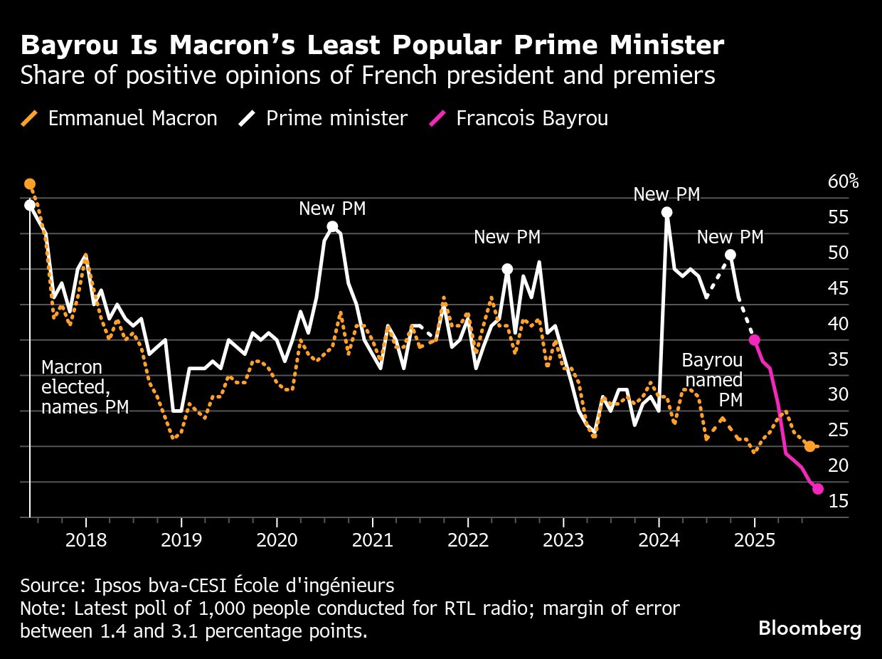 Bayrou sebelumnya mengusulkan pemotongan belanja dan kenaikan pajak senilai €44 miliar untuk memangkas defisit Prancis pada 2026 menjadi 4,6% dari produk domestik bruto, turun dari perkiraan 5,4% tahun ini. Ia juga melontarkan usulan kontroversial berupa penghapusan dua hari libur nasional guna mengurangi beban biaya di ekonomi terbesar kedua Uni Eropa itu.