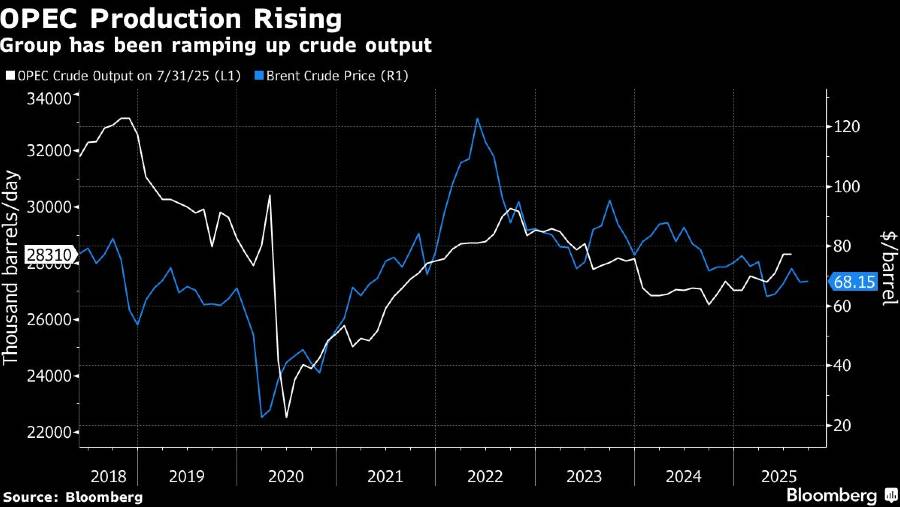 Dilaporkan Bloomberg, sejumlah anggota utama aliansi mengatakan mereka diperkirakan menyetujui tambahan produksi sekitar 137.000 barel per hari (bph) dalam rapat virtual pada Minggu (7/9/2025).