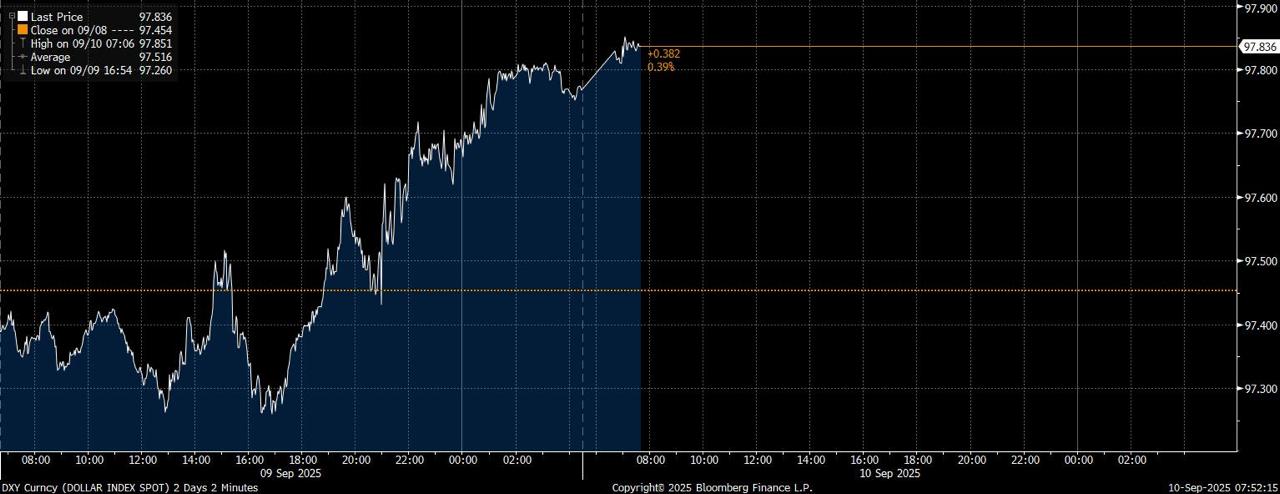 Pagi ini, indeks tersebut masih menghijau. Pada pukul 09:07 WIB, Dollar Index menguat 0,02% ke 97,779.