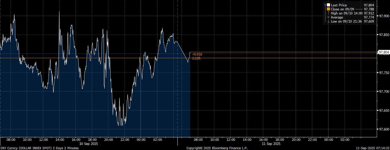 Pada pukul 07:35 WIB, Dollar Index turun tipis 0,03% ke 97,826.