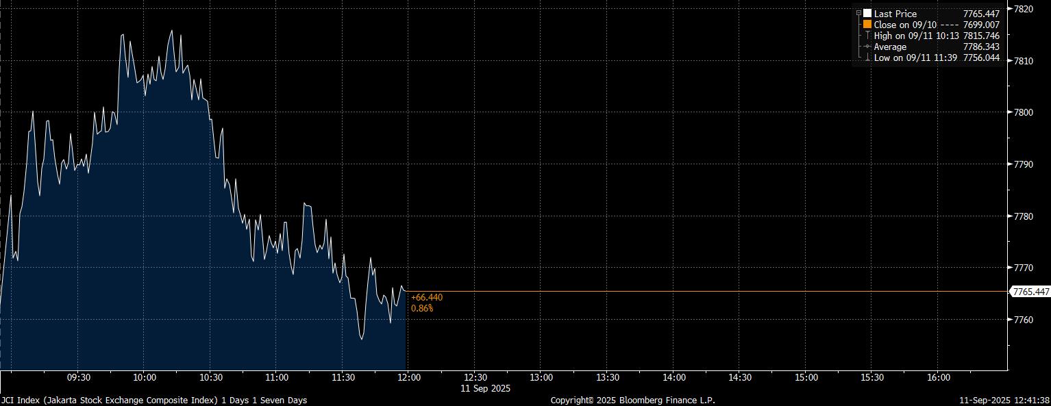 Bloomberg Technoz, Jakarta - Indeks Harga Saham Gabungan (IHSG) ditutup menguat 0,86% pada perdagangan Sesi I, Kamis (11/9/2025). Menguatnya saham bank Himbara jadi pendorong.