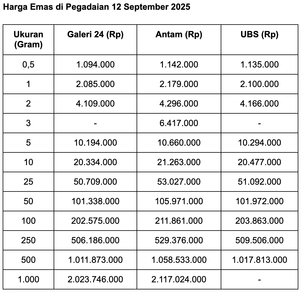 Pegadaian adalah salah satu anak usaha PT Bank Rakyat Indonesia (Persero) Tbk (BBRI). Berikut perkembangan harga emas di Pegadaian selengkapnya, seperti dilansir situs Sahabat Pegadaian: