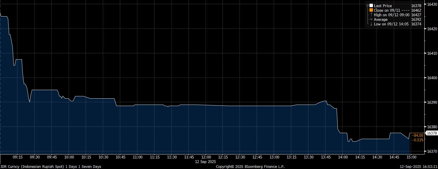 Melansir data Bloomberg, pada closing bell pasar spot Jumat (12/9/2025), rupiah ditutup menguat 0,51% di Rp16.378/US$. Penguatan rupiah pun menjadi yang terbaik di Asia.