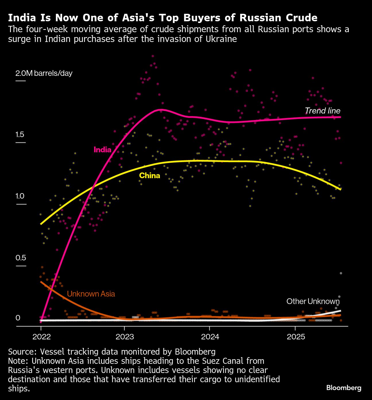Trump telah menyampaikan kepada pejabat Eropa bahwa dia bersedia menjatuhkan tarif baru secara luas terhadap India dan China untuk menekan Putin ke meja perundingan dengan Ukraina—tetapi hanya jika negara-negara Eropa melakukan hal serupa.