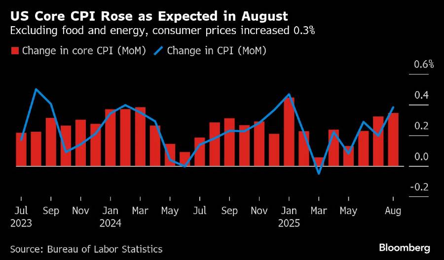 Inflasi inti AS naik sesuai perkiraan pada Agustus. Harga barang, kecuali makanan dan energi, meningkat 0,3%, menyamai kenaikan terbesar sejak Mei 2023. Hal ini mencerminkan kenaikan harga mobil baru dan bekas, pakaian, serta peralatan rumah tangga, yang menurut beberapa ekonom mungkin terdampak tarif.