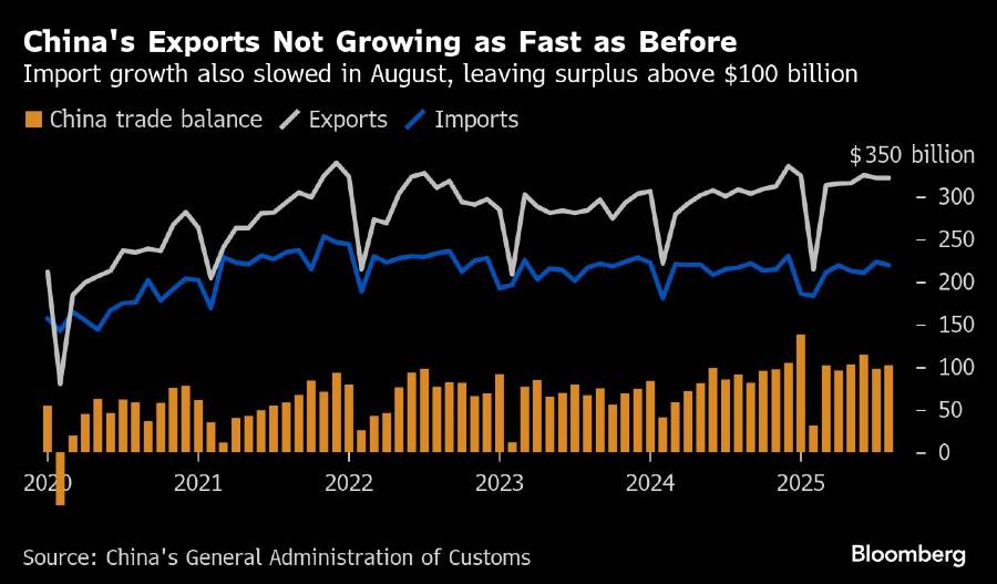 Pertumbuhan ekspor China melambat ke level terlemah dalam enam bulan terakhir karena penurunan pengiriman ke AS semakin dalam, meski lonjakan penjualan ke pasar lain membuat Beijing tetap di jalur untuk mencapai rekor surplus perdagangan lebih dari US$1,2 triliun tahun ini.