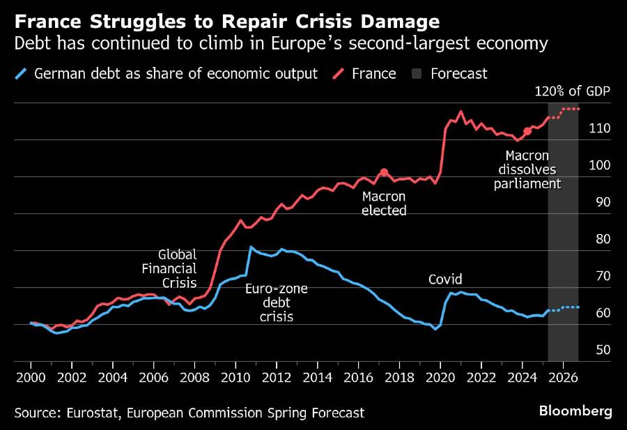 Prancis memiliki rekam jejak yang buruk dalam memenuhi target pengurangan defisit yang ditetapkan pemerintahannya. Tidak seperti banyak negara lain di zona euro, Prancis juga kesulitan mengendalikan pengeluaran dan ketergantungan pada utang pascakrisis.