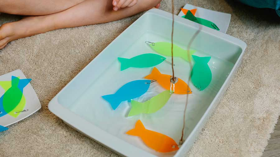 Eksperimen ini mengajarkan anak tentang kelarutan dan kepadatan. Gambar ikan menggunakan spidol non-permanen pada piring kaca, lalu tuangkan air perlahan. Tinta spidol akan terlepas karena memiliki kepadatan lebih rendah dibanding air. Saat piring dimiringkan, gambar ikan terlihat bergerak, menciptakan ilusi menarik.