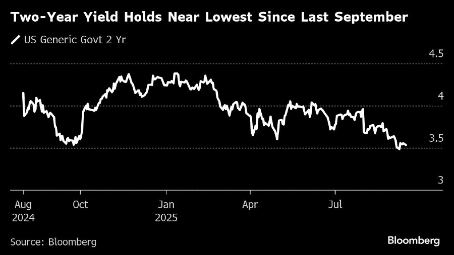 Obligasi pemerintah AS menguat, dengan imbal hasil dua tahun mendekati level terendah sejak September lalu. Dolar AS melemah.