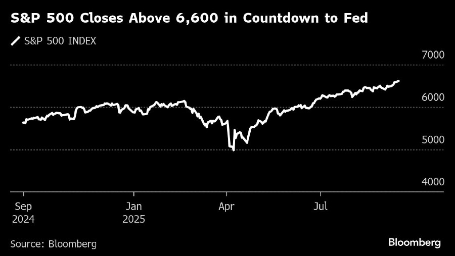 Spekulasi pelonggaran The Fed mengerek S&P 500 ke atas 6.600 pada Senin waktu setempat, sementara Nasdaq 100 mencatat kenaikan terpanjang sejak 2023. Lonjakan saham Tesla Inc menghapus penurunan tahun 2025 setelah Elon Musk membeli saham senilai US$1 miliar.