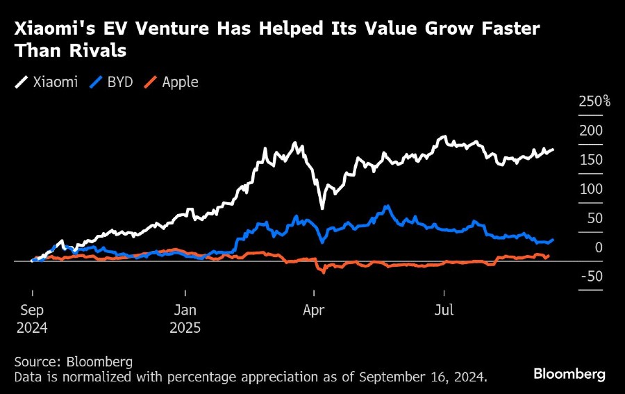 Dikenal karena proposisi nilai-untuk-uangnya yang mencakup segala hal mulai dari smartphone dan laptop hingga peralatan dapur dan koper, Xiaomi melakukan langkah berani memasuki pasar kendaraan listrik yang mulai membuahkan hasil dalam setahun terakhir, hampir tiga kali lipat sahamnya yang diperdagangkan di Hong Kong. Berhasil di bidang yang ditinggalkan Apple, Xiaomi tampaknya semakin berani untuk menantang pemimpin pasar smartphone AS.