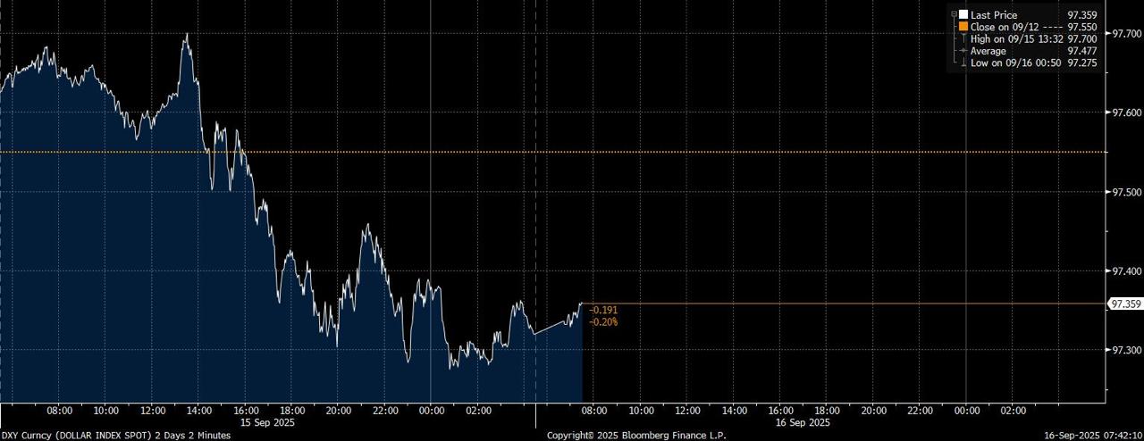 Pelemahan dolar AS disebabkan oleh keyakinan pasar bahwa bank sentral Federal Reserve bakal menurunkan suku bunga acuan dalam rapat pekan ini. Mengutip CME FedWatch, peluang penurunan Federal Funds Rate sebesar 25 basis poin (bps) ke 4-4,25% adalah 95,9%. Sementara kemungkinan pemangkas 50 bps menjadi 3,75-4% adalah 4,1%.