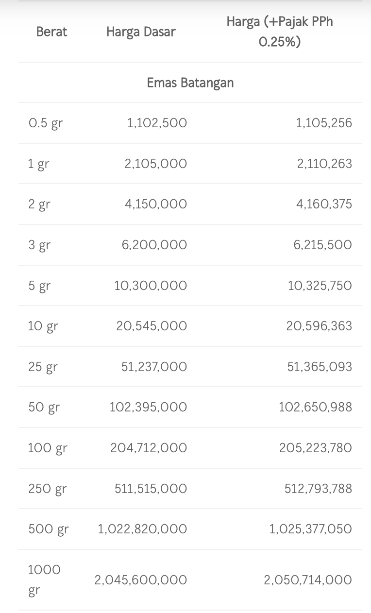 Berikut daftar harga emas Logam Mulia Antam selengkapnya untuk hari ini: