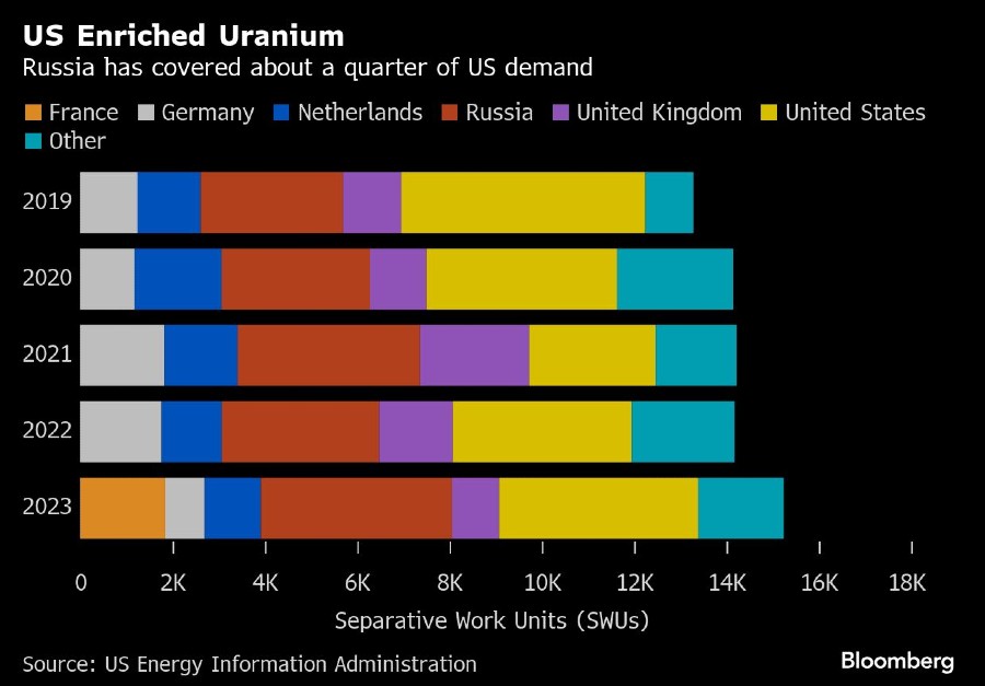 Wright mengungkap AS sedang "berusaha keras" merombak rantai pasokan bahan bakar nuklir. Pada Mei 2024, pemerintahan Biden menandatangani undang-undang yang mewajibkan perusahaan utilitas untuk beralih dari pasokan Rusia pada 2028. Enam bulan kemudian, Rusia membalas dengan membatasi sementara ekspor uranium yang diperkaya ke AS.