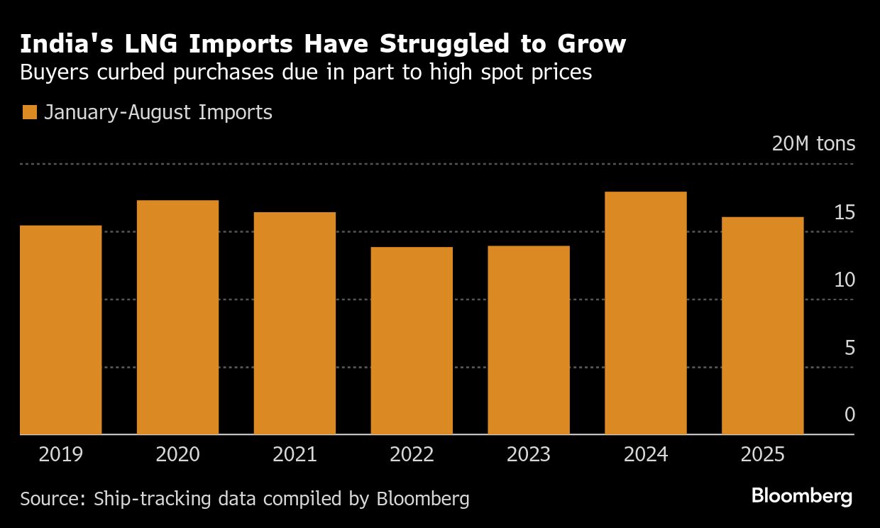 Harga spot LNG Asia tahun ini diperdagangkan di atas US$11 per juta British thermal unit (MMBtu) — melampaui level di mana perusahaan India yang sensitif harga biasanya baru masuk membeli.