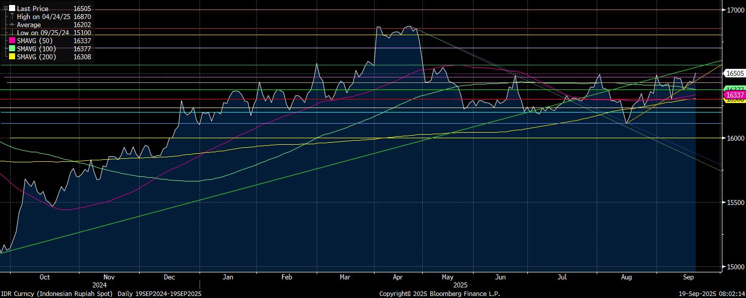 Secara teknikal dengan perspektif harian (daily time frame), rupiah akan menguji support Rp 16.500-16.550/US$. Penembusan di level ini bisa menyebabkan rupiah melemah ke arah Rp 16.580/US$.