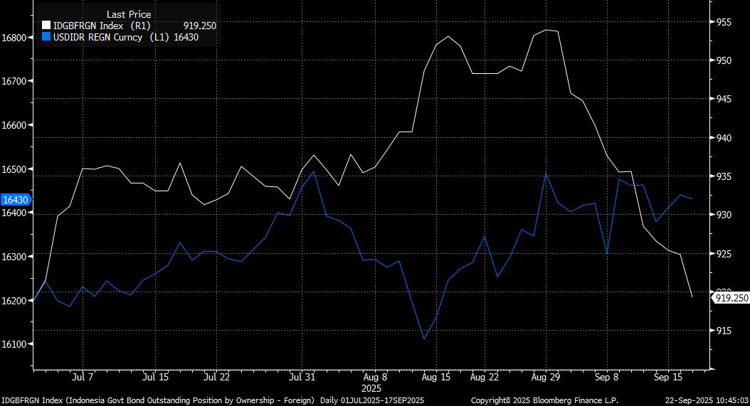 Sebelum kesepakatan Banggar dan Kemenkeu diumumkan perihal batas defisit fiskal RAPBN 2026 pada Jumat lalu, investor nonresiden sudah mulai mengurangi posisi ketika keluar kabar rencana revisi regulasi yang mengatur mandat Bank Indonesia dan mekanisme evaluasi berkala oleh parlemen terhadap jajaran pejabat utama bank sentral pada Selasa pekan lalu.