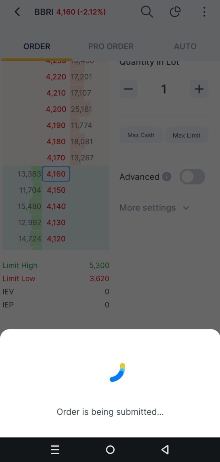 Tidak berhenti sampai di situ, pengguna tidak bisa melakukan transaksi. Proses terhenti di tampilan 'order is being submitted'.