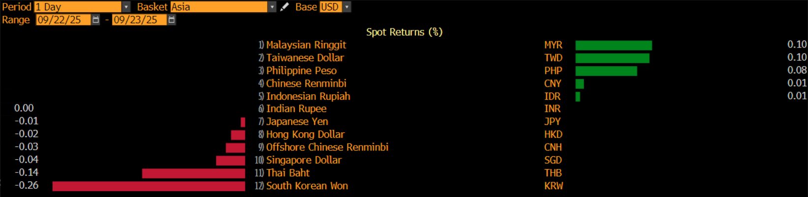 Won Korsel melemah paling dalam nilainya mencapai 0,26%, menyusul baht Thailand terdepresiasi 0,14%, dengan pelemahan dolar Singapura 0,04%, yuan offshore 0,03%, bersama dolar Hong Kong 0,02%, dan juga yen Jepang melemah 0,01%.