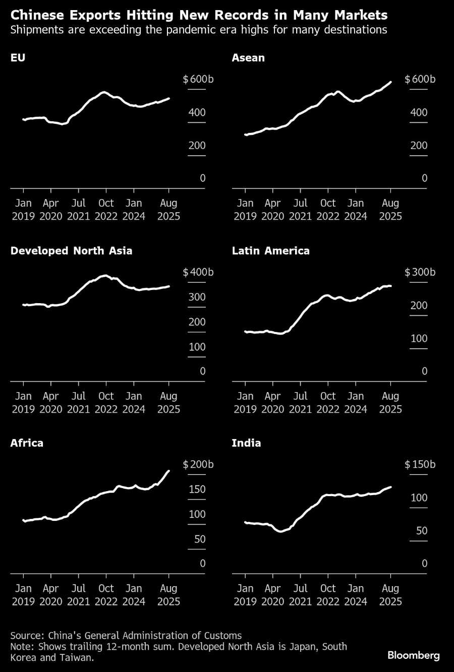 Meski akses ke pasar AS dibatasi, produsen China menunjukkan bahwa mereka tidak akan mundur: pembelian dari India mencapai rekor tertinggi sepanjang masa pada Agustus, pengiriman ke Afrika menuju rekor tahunan, dan penjualan ke Asia Tenggara melampaui puncak di era pandemi.