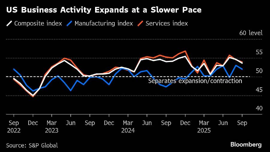 Menurut data yang dirilis pada Selasa (23/9/2025), indeks output komposit S&P Global untuk September turun 1 poin menjadi 53,6. Angka di atas 50 menunjukkan ekspansi.