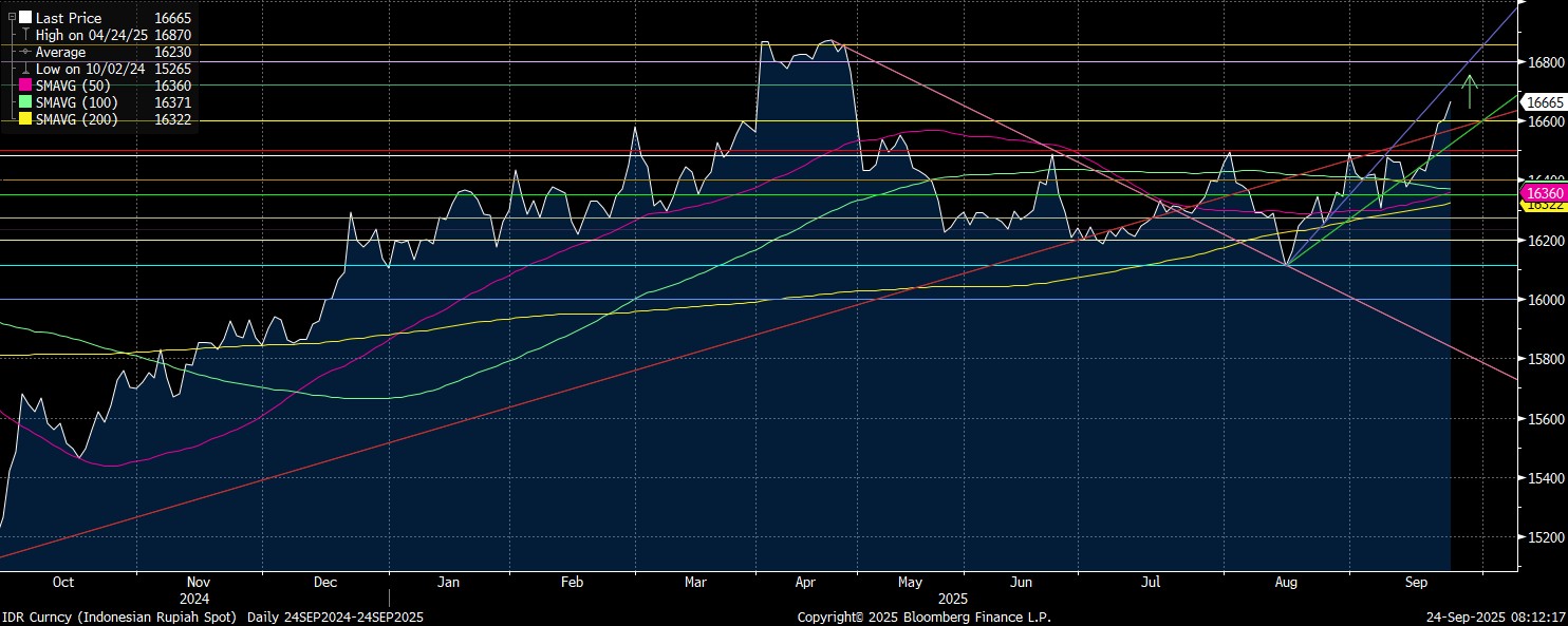 Adapun rupiah sejatinya masih ada potensi penguatan optimistis seiring sentimen yang cenderung membaik. Resisten potensial adalah Rp 16.550/US$.