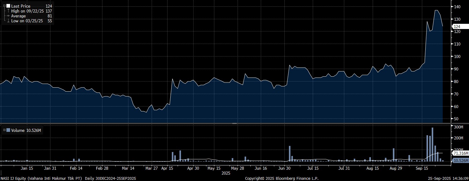 Jauh sebelumnya, mengutip Bloomberg, riset Astronacci International menilai emiten HOKI berpotensi memanfaatkan program Presiden (MBG). “taking advantage on presidential programmes.”