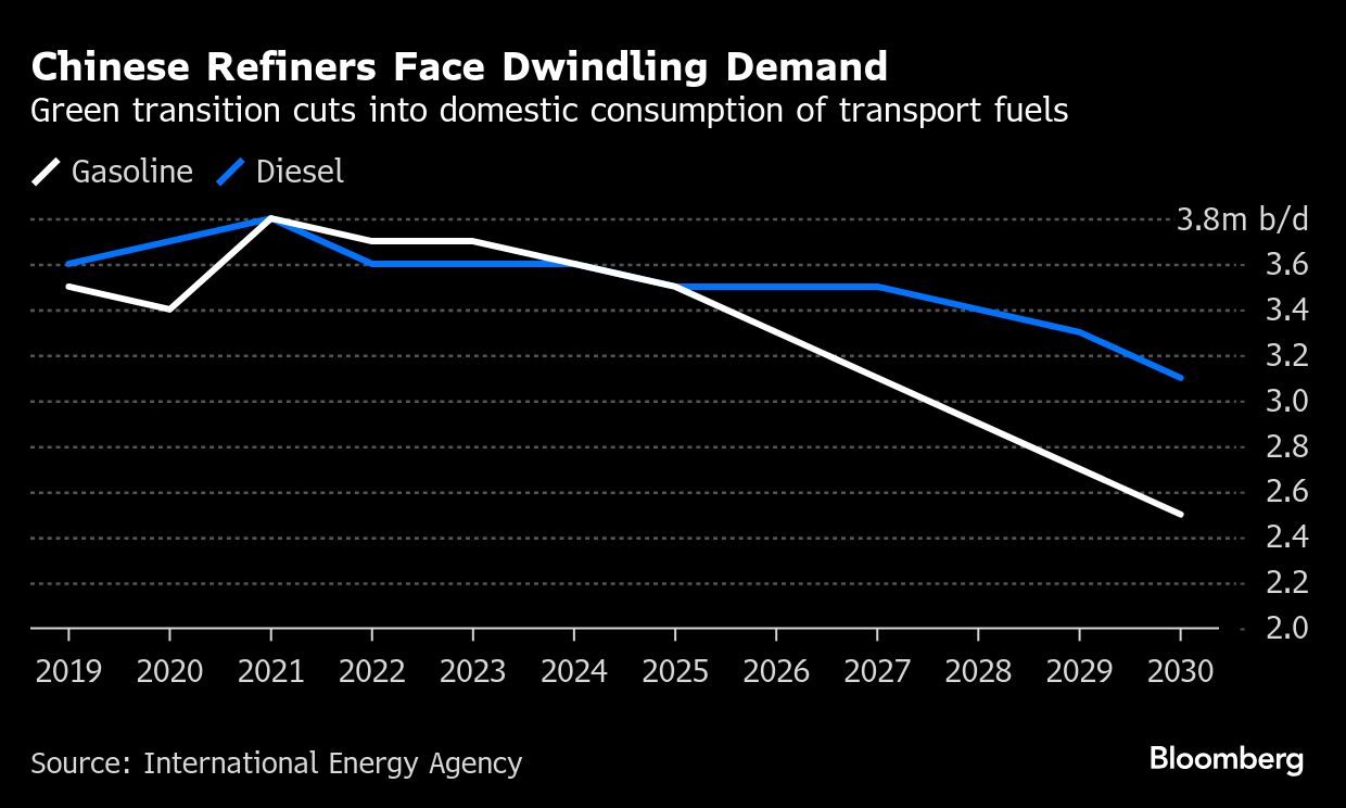 Penyulingan minyak China perlu berhenti memproduksi bahan bakar transportasi dalam jumlah besar karena transisi energi berarti permintaan sudah tidak ada lagi.
