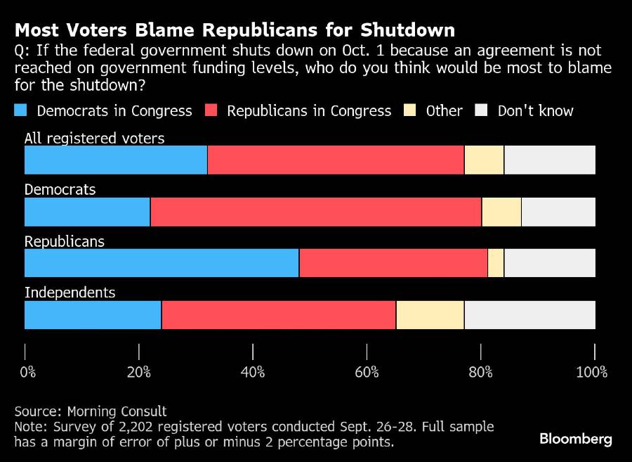 Senator John Barrasso, anggota pimpinan Senat dari Republik, mengatakan majelis akan reses untuk liburan Yom Kippur pekan ini jika terjadi shutdown. Namun, ia kemudian kembali ke Washington dan melakukan pemungutan suara hingga akhir pekan.