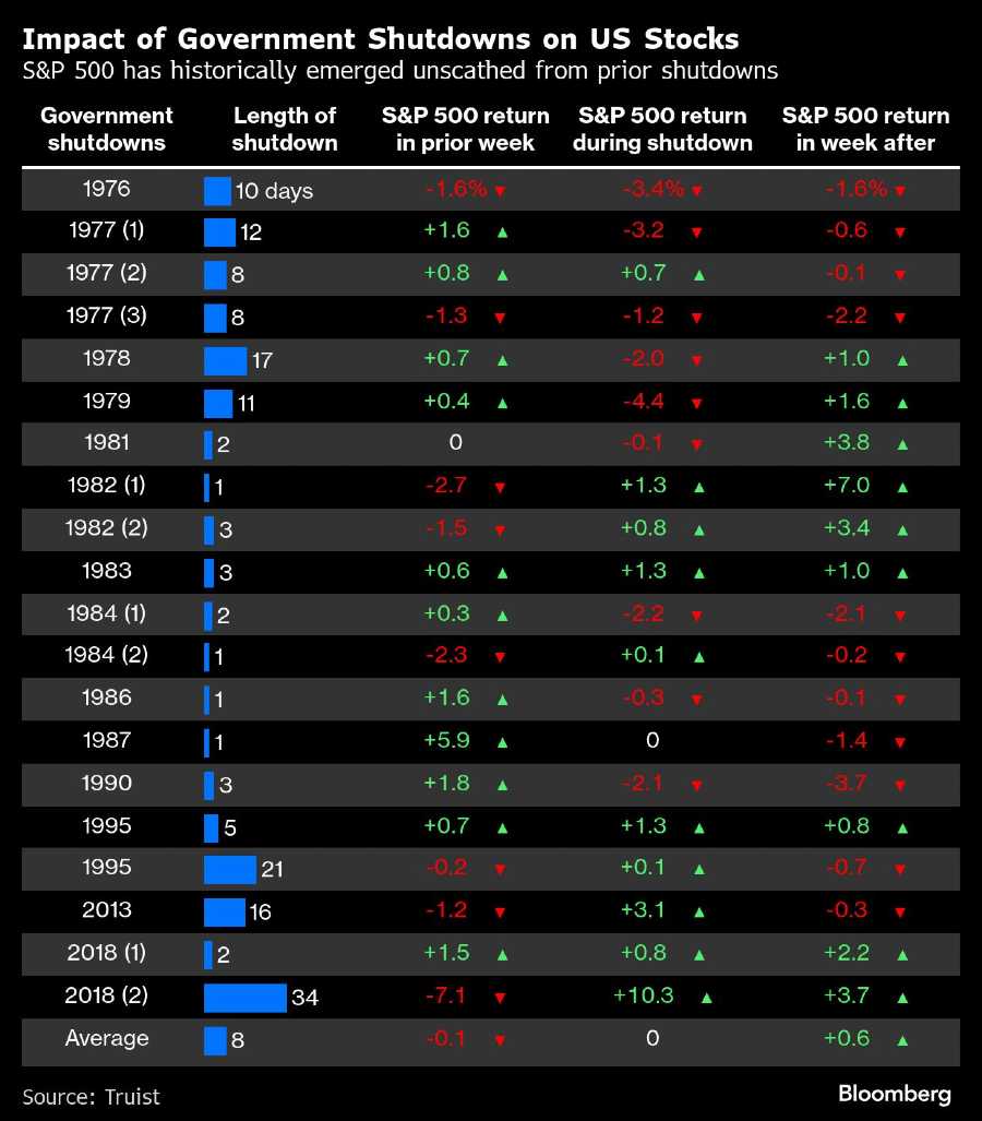 Pasar saham secara umum cenderung mengabaikan perselisihan anggaran: Indeks S&P 500 rata-rata hampir tidak bergerak selama 20 shutdown terakhir, menurut data yang dikumpulkan Truist. Para profesional Wall Street juga tetap tenang terhadap portofolio mereka kali ini.