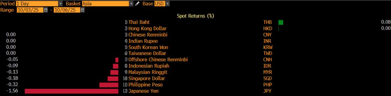 Yen Jepang jadi mata uang terlemah di Benua Kuning dengan depresiasi lebih dari 1%. Disusul oleh peso Filipina yang melemah 0,32% dan dolar Singapura dengan depresiasi 0,18%.